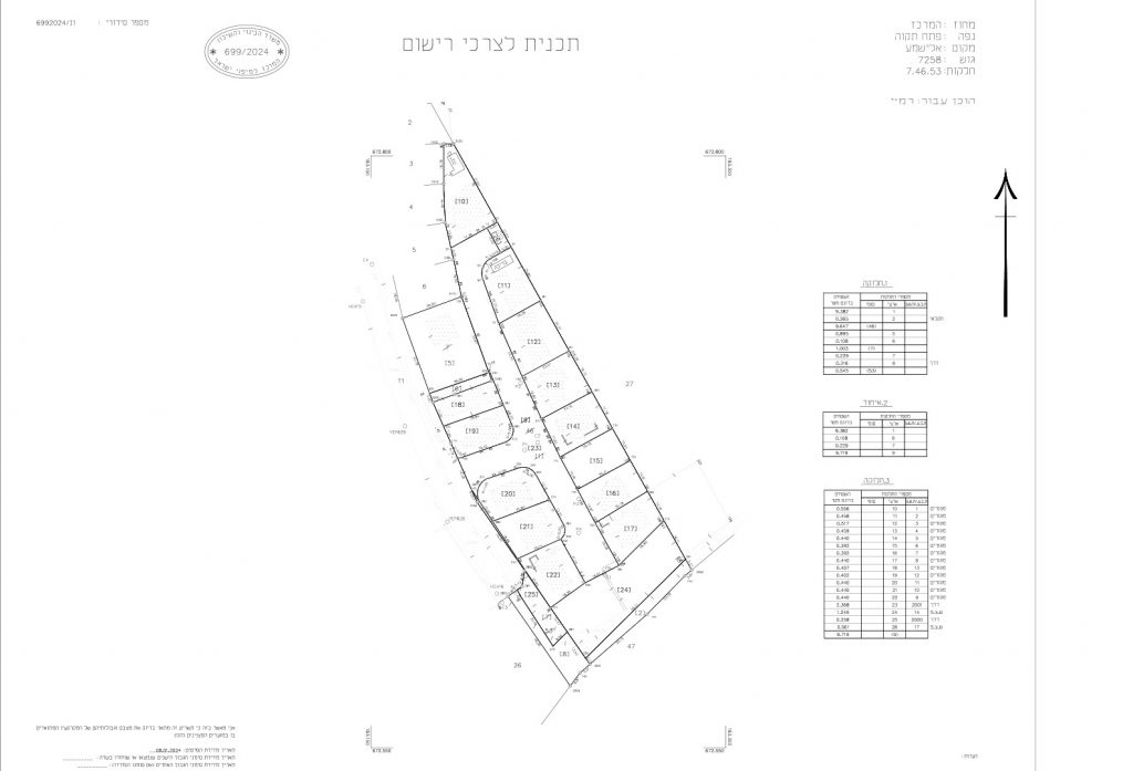 תכנית לצרכי רישום, לצורך שינוי גבולות החלקות, כגון איחוד או/ו חלוקה, הפקעות ועוד.